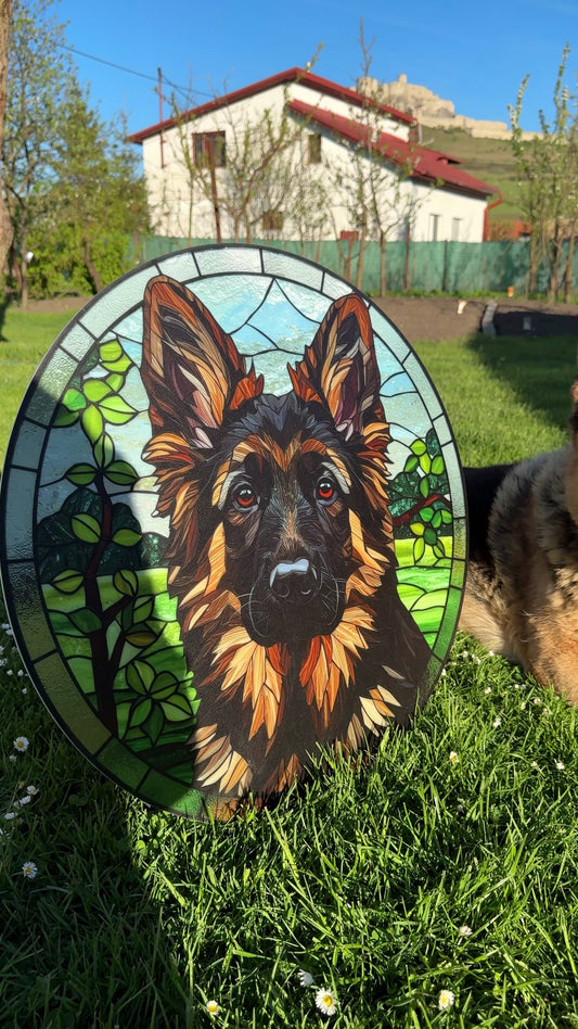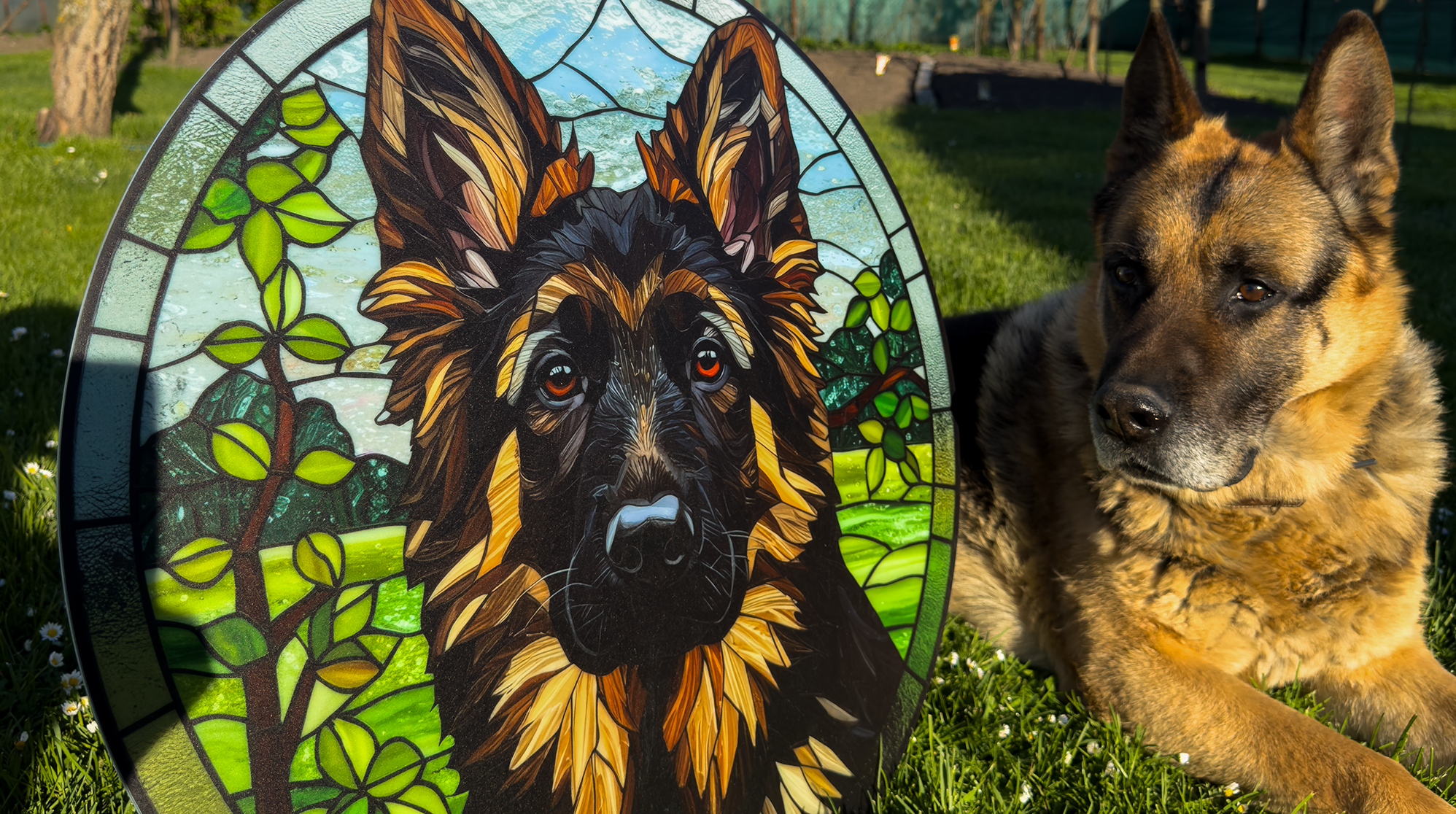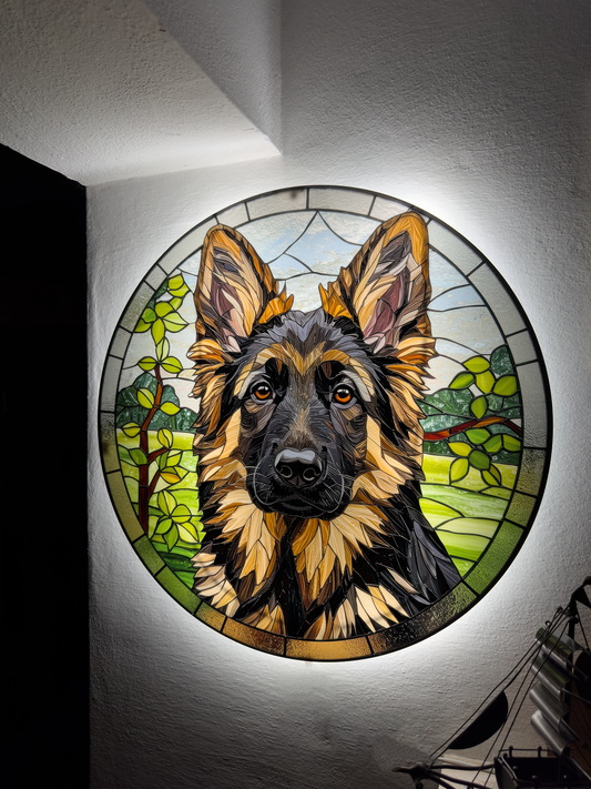 • Luminous poster German Shepherd Glass Portrait - customizable