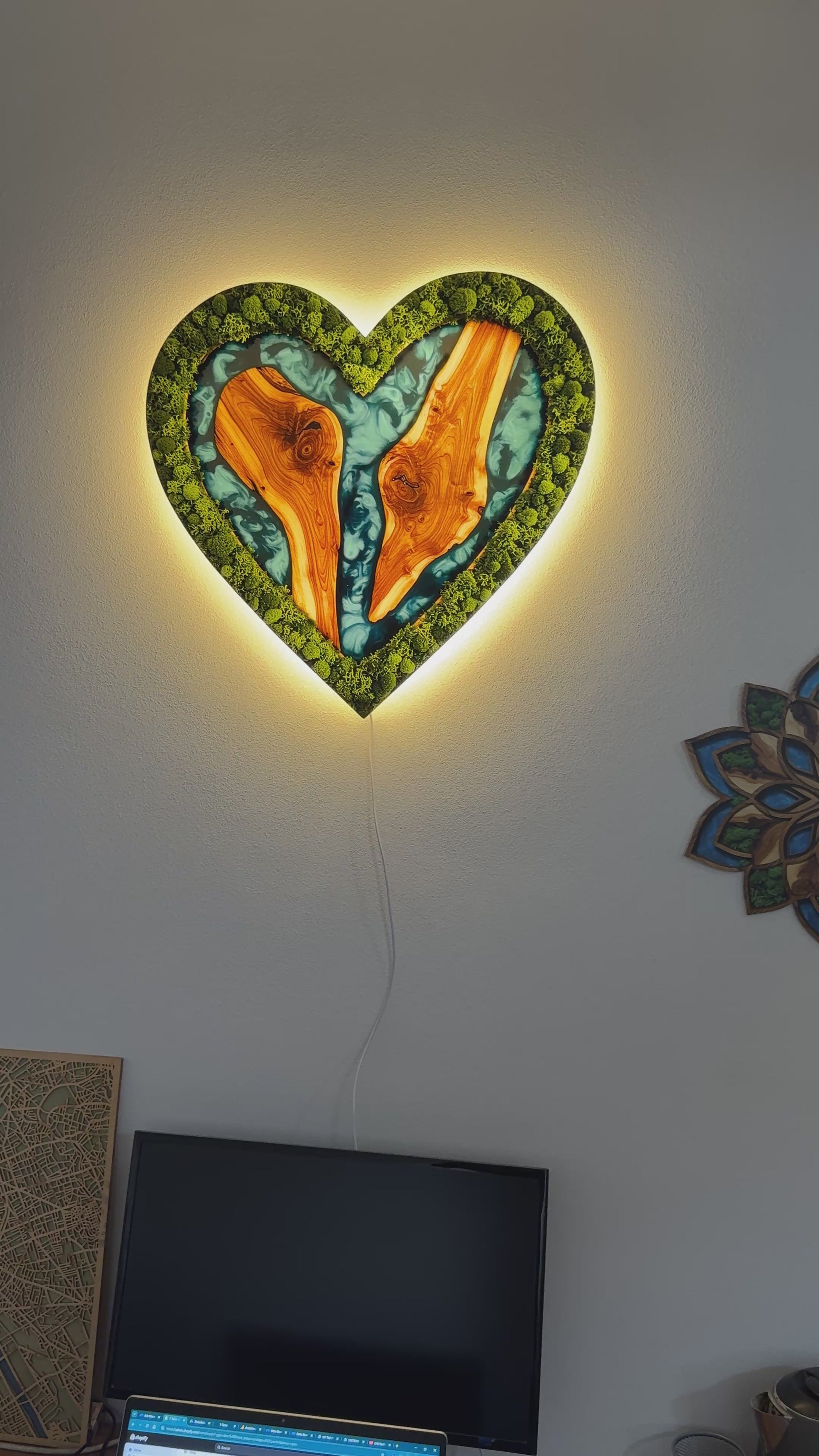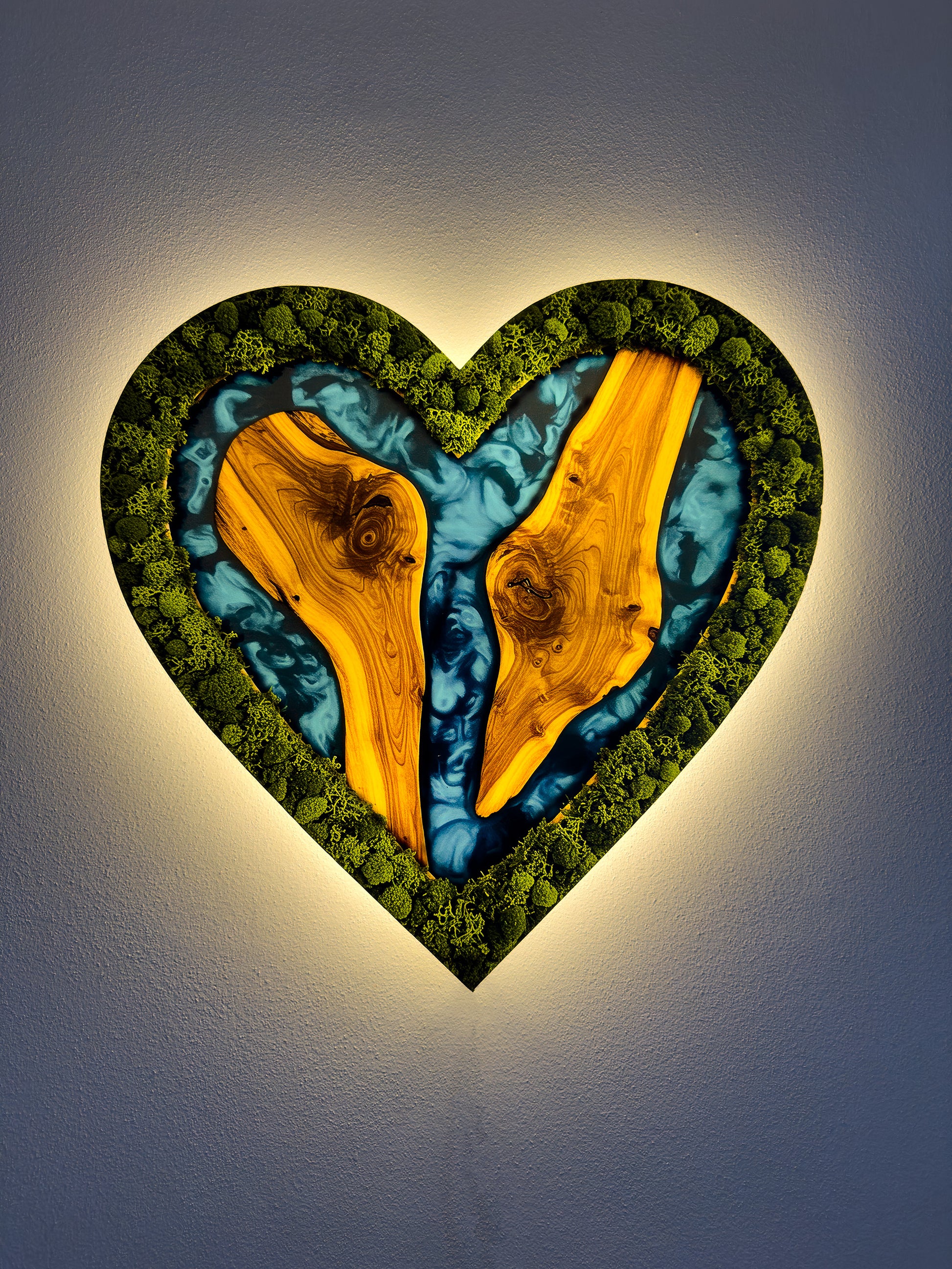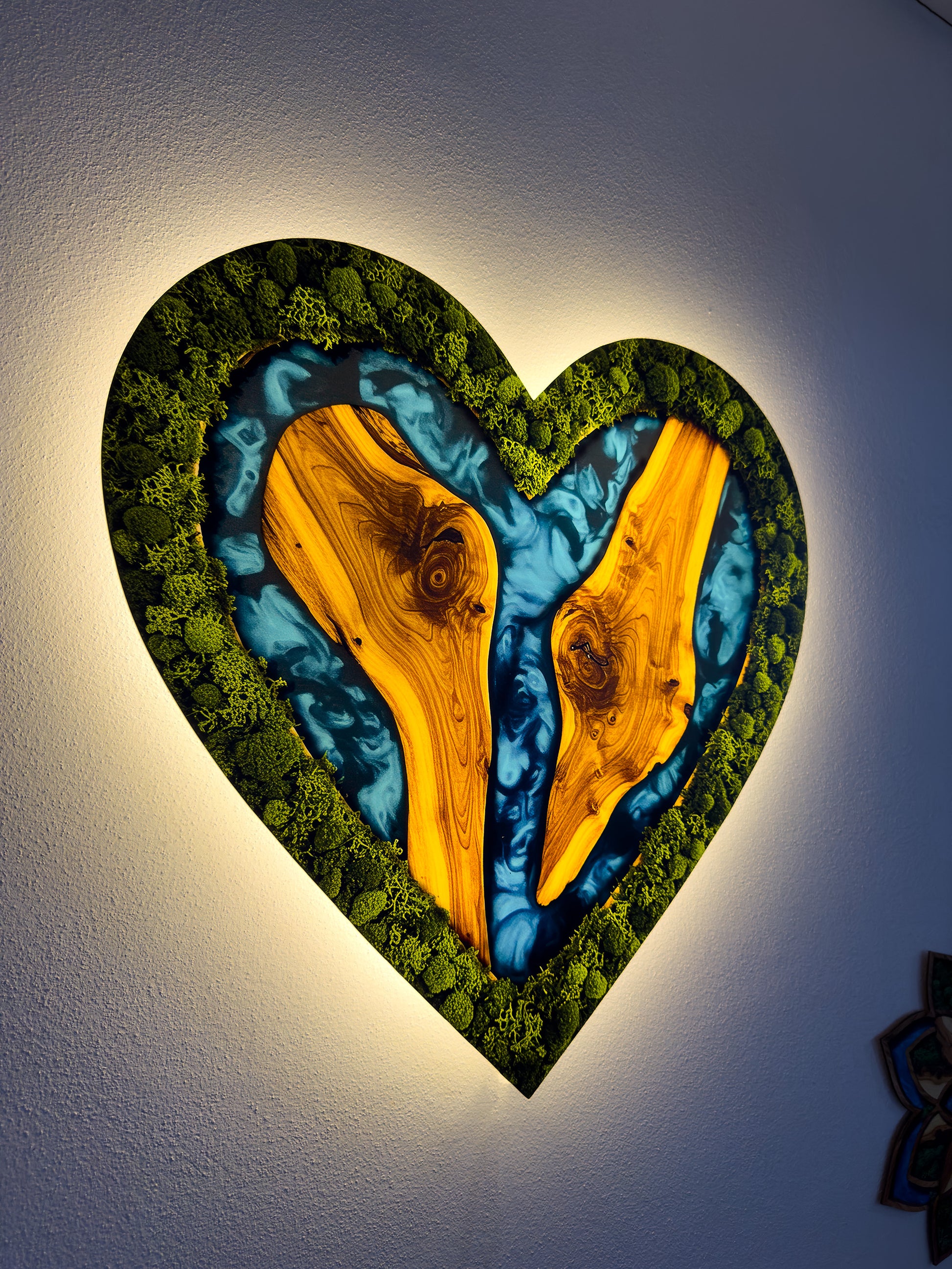 Luminous poster Heart - Blue Samba Glass poster - moss stylized