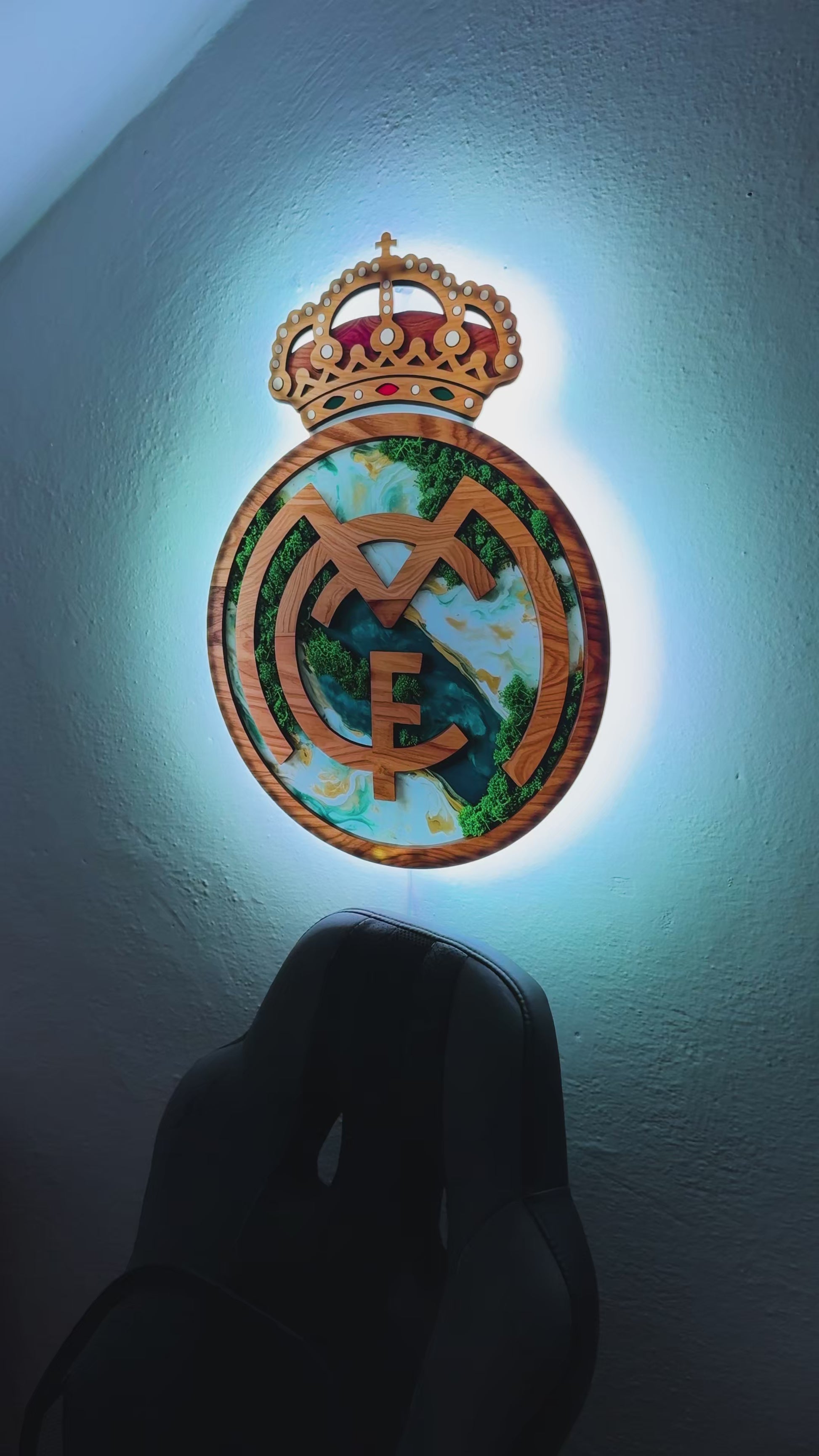 Real Madrid CF - wall logo/lamp white marble/moss combo