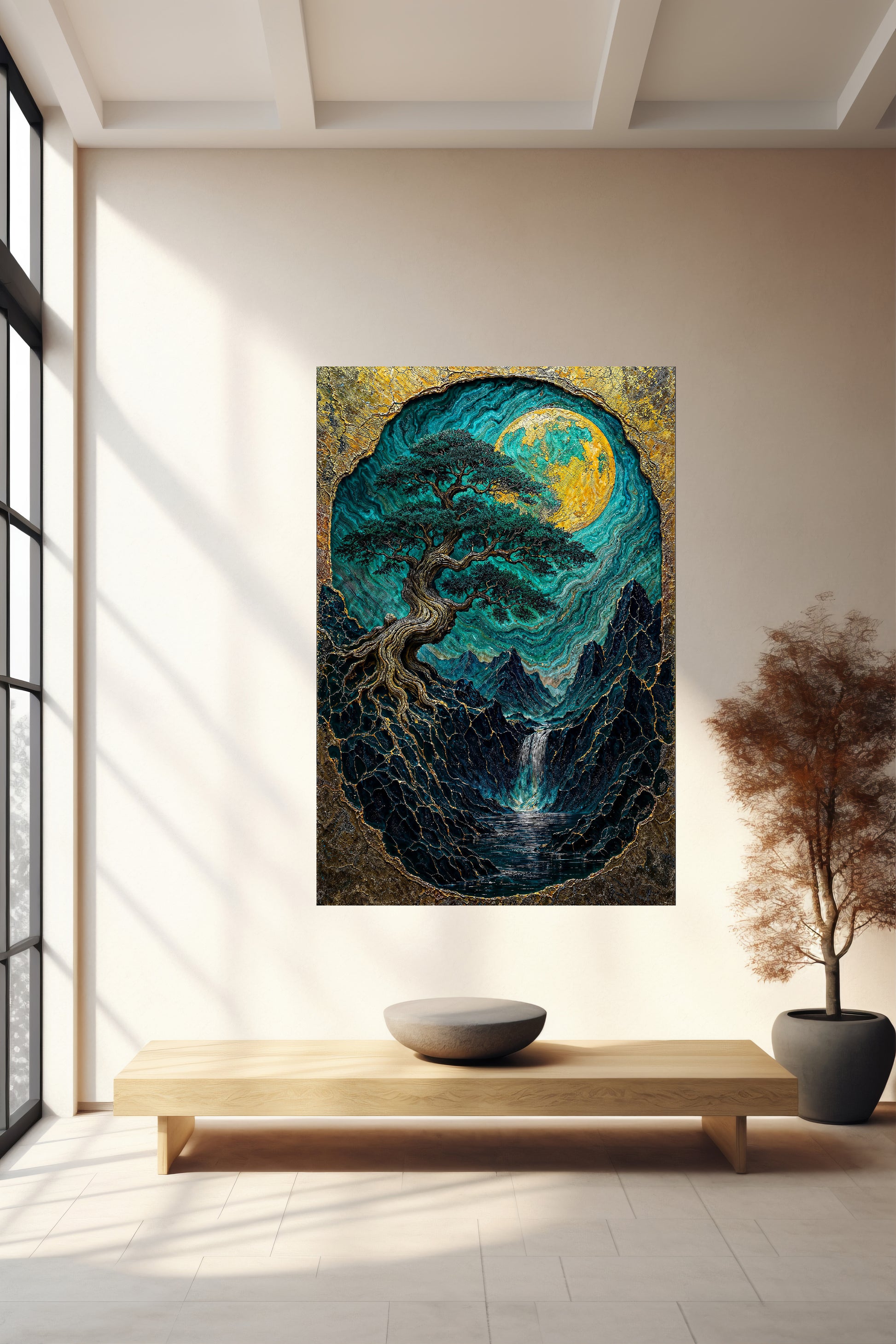 Wooden UV printed Wall Decor - Golden Pine Tree